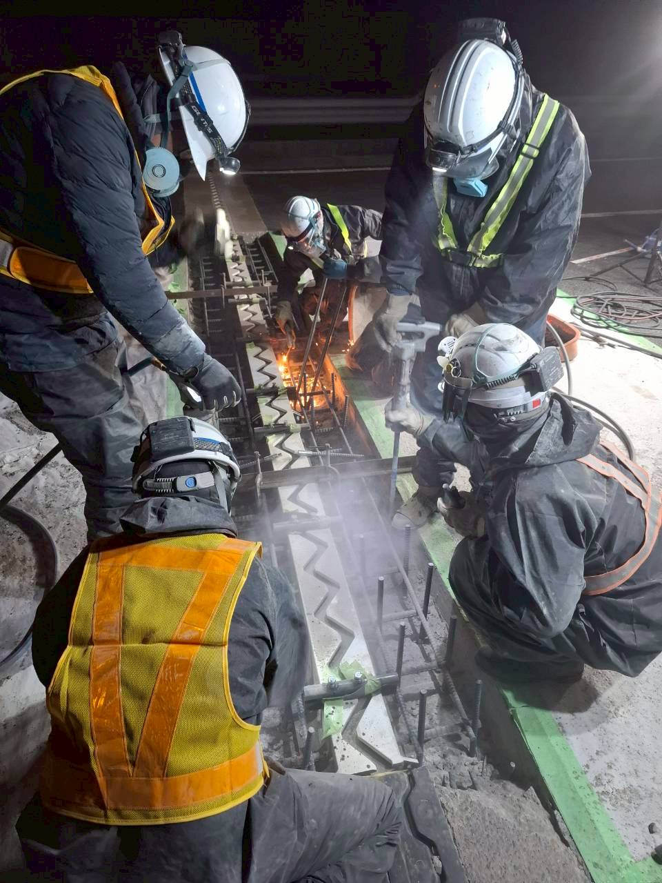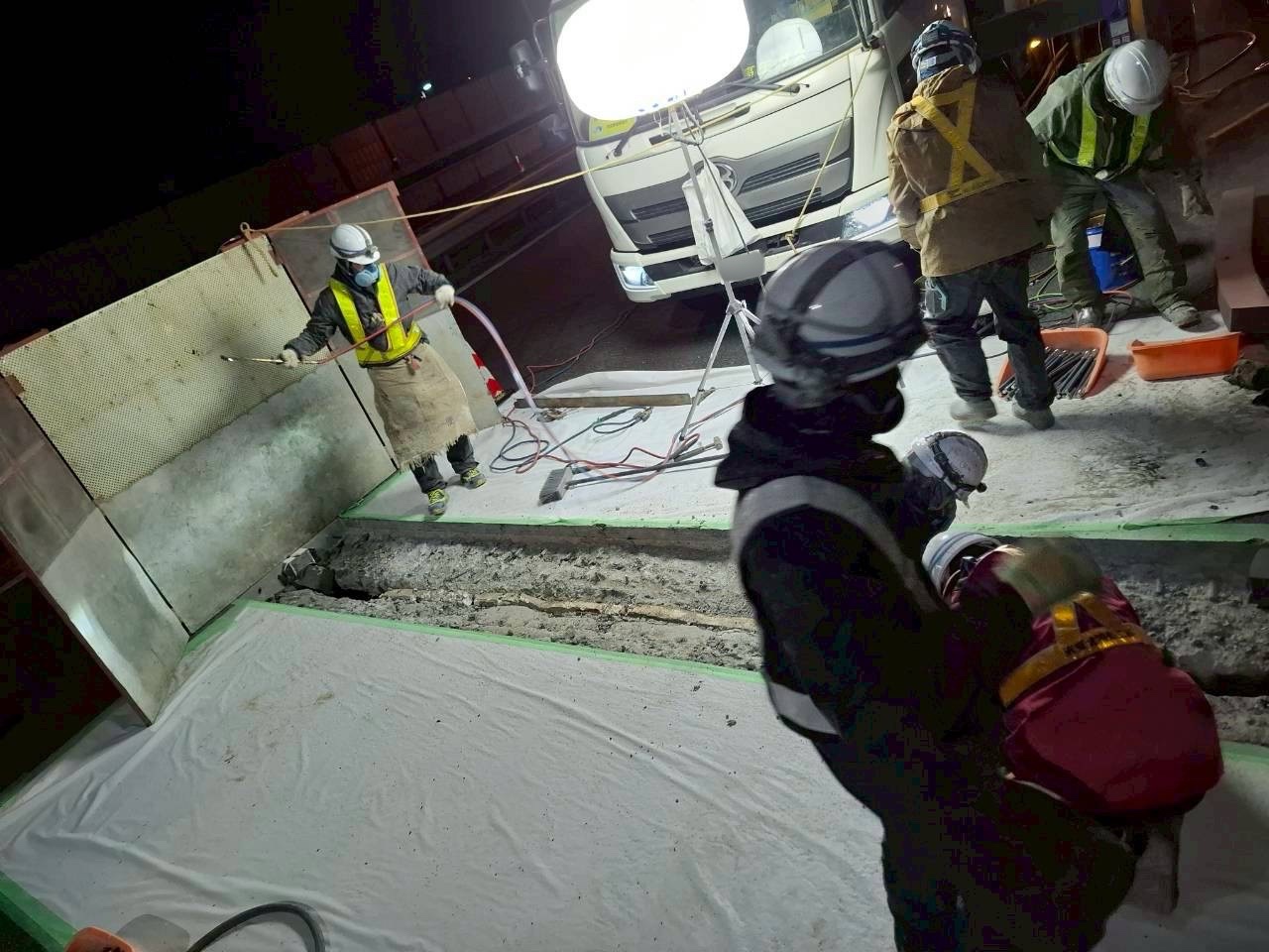 関係機関と調整のうえ、夜間施工にて作業を行いました。