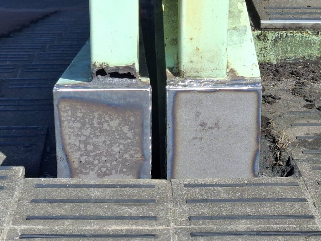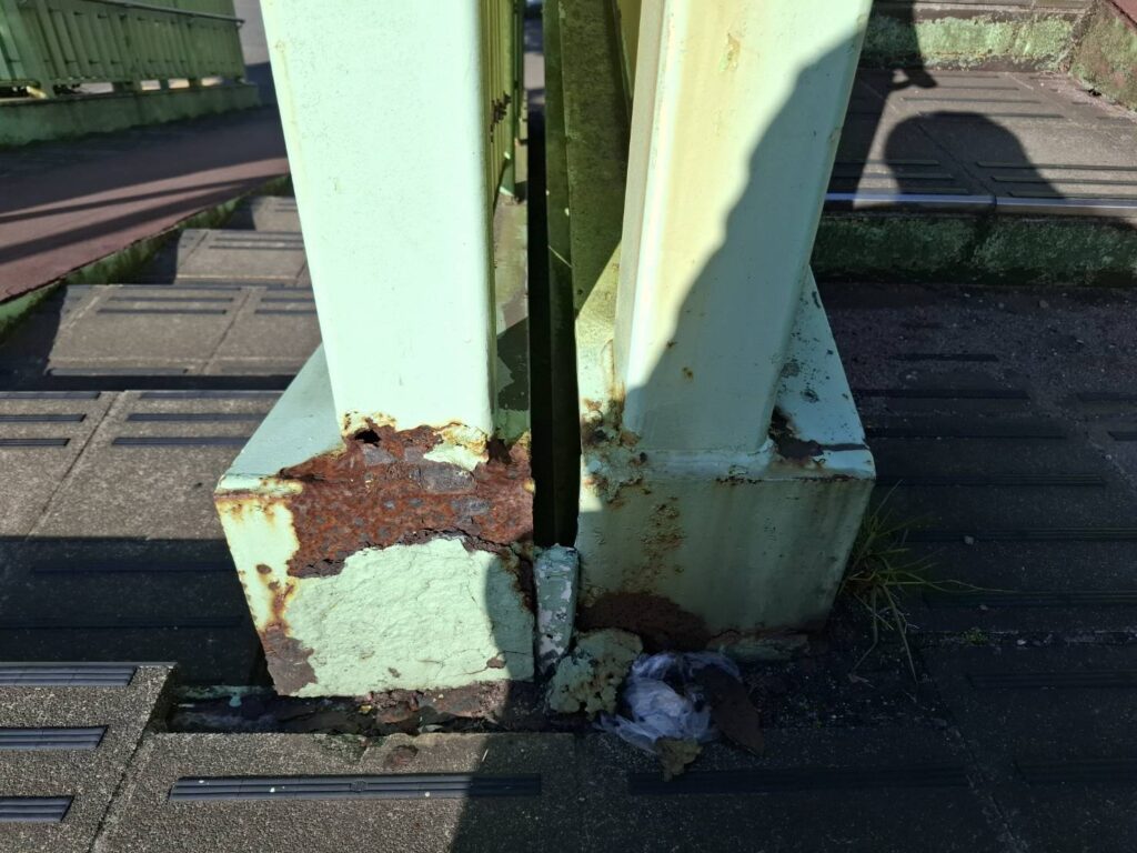 特に支柱の下部は水分が滞留しやすく、腐食が進行しやすい箇所であるため、早急な対応が必要と判断されました。