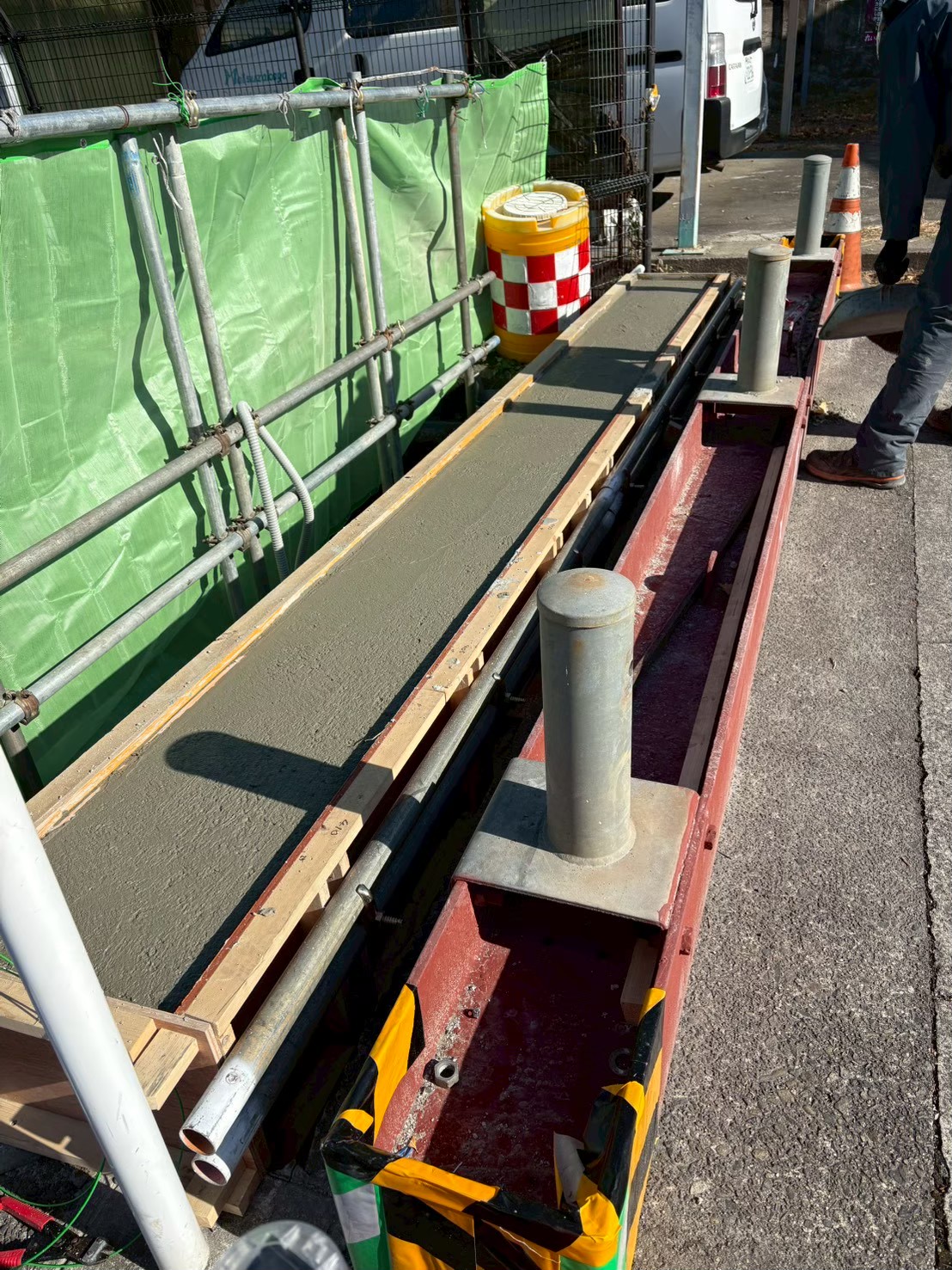 打設時には締固め作業を丁寧に行い、ジャンカや空隙の発生を防止。表面仕上げも均一に整え、品質確保に努めました。