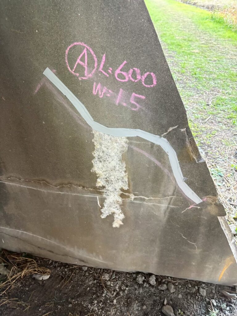 ひび割れは放置すると、雨水の侵入口となり内部鉄筋の腐食や中性化の進行を招きます💦